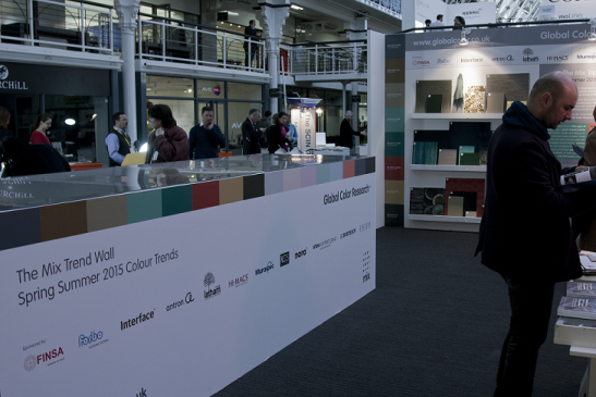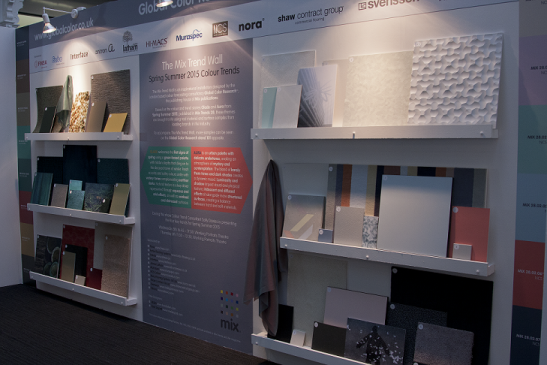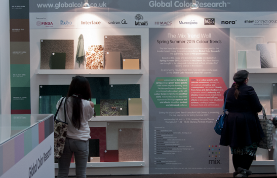 This year we presented our colour trend themes for Spring Summer 2015 Glade and Aura on our Mix Trend Wall. Using real life samples given to us by our sponsors we were able to bring our trend stories to life and show their diverse application to surface and material design.